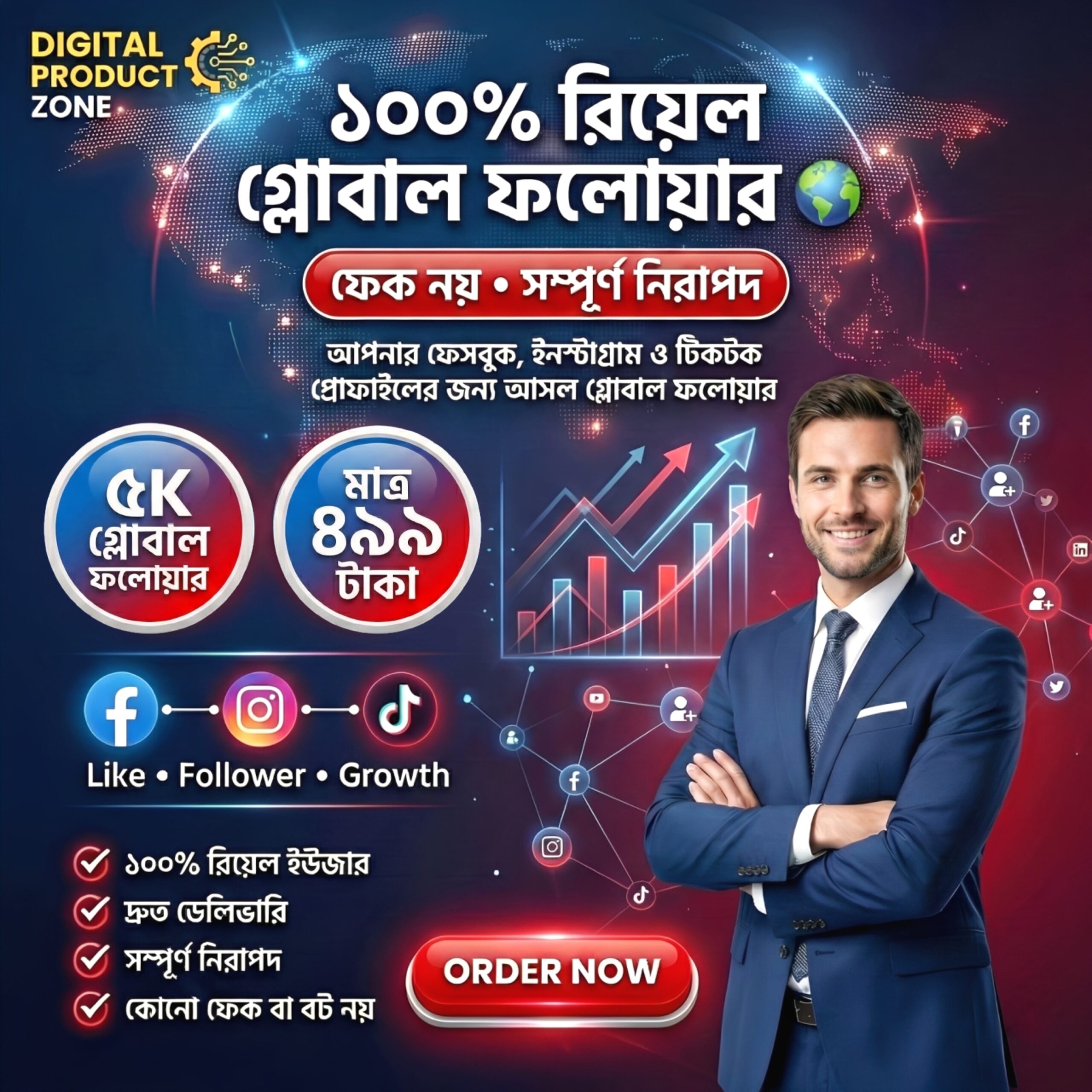 🌐 ১০০% রিয়েল গ্লোবাল ফলোয়ার সার্ভিস