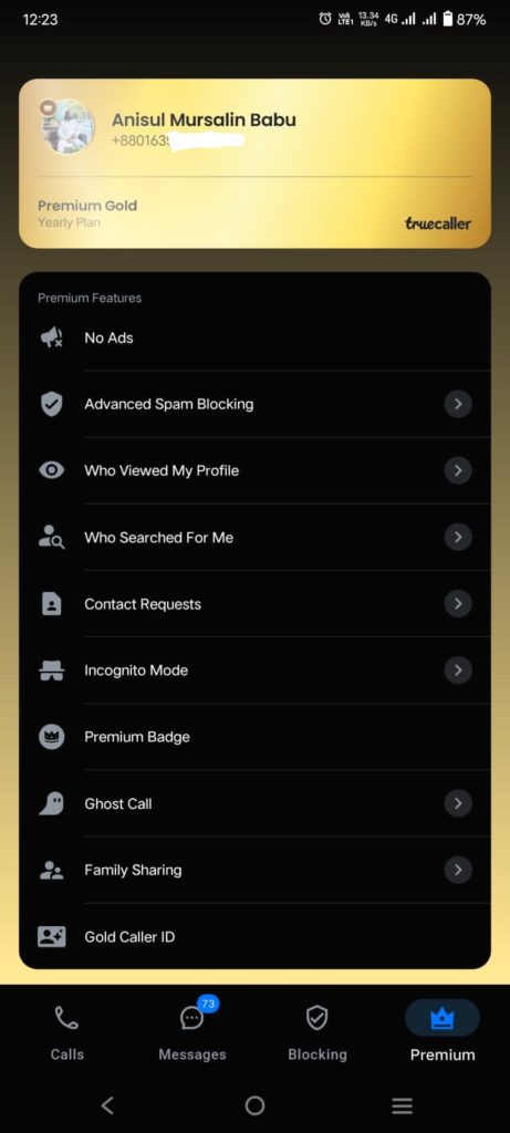 সত্যিই ট্রুকলার প্রিমিয়াম গোল্ড হয়েছে,